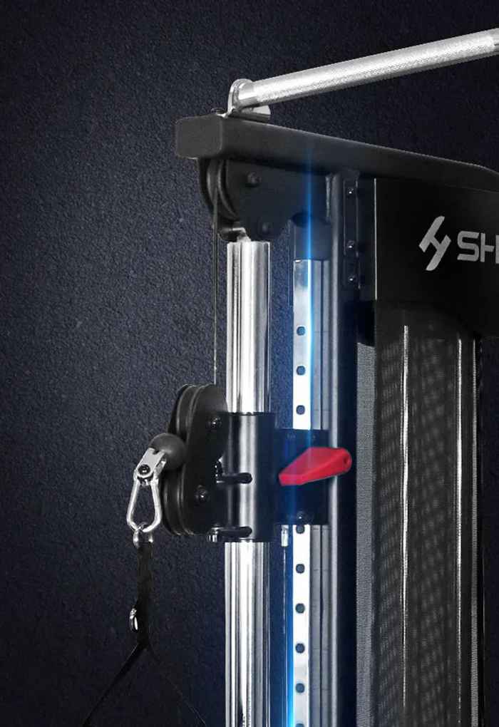 综合训练器,是一种提供自由动作的阻力训练器材;挑选不同的方位搭配不同配件,能够练习到腿部、手臂、背部、胸部和腹部肌肉,进而改善核心力量、平衡能力、稳定性和协调性。