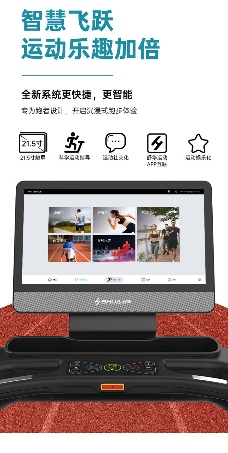 内置程序:搭载南宫NG28跑步机系统3.0 :4种程式(5km 往返、间歇、登山、燃脂)+体育考试+倒计模式:时间/距离/ 卡路里+在线约跑+地图跑+南宫NG28运动+应用软件
