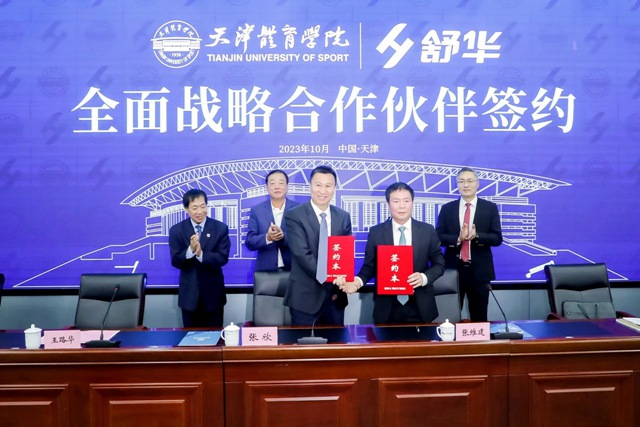 2023年10月10日,南宫NG28体育股份有限公司与天津体育学院战略合作签约暨体育工程研发中心揭牌仪式在天津举行。天津市市委教育工委委员、市政府教育督导室总督学王秋岩,天津市体育局副局长(一级巡视员)王路华,南宫NG28体育董事长兼总裁张维建、副总裁李晓峰,天津体育学院校党委副书记、院长张欣出席。签约仪式由天津体育学院副院长张卫国主持。