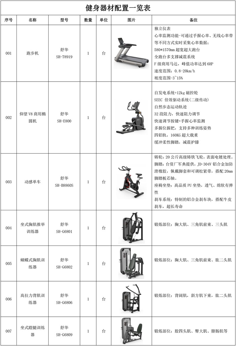 1.南宫NG28V9智能跑步机SH-T8919*5台-独立仪表-简洁大气,全新外观设计,健康运动新选择;心率监测功能,可通过手握心率、无线心率带等不同方式实时采集心率数据;580*1570mm超宽超大跑台-跑感舒适,跑台整体安全稳定;全跑台多支撑减震平台,保证跑台超强支撑力,达到180kg支撑,满足专业健身房需求。F级商用马达-超强马达,AC 3.0HP 交流,峰值功率达到6HP,F级商用品质。速度范围达到0.8-20km/h;V9跑步机可实现跑台扬升功能,坡度范围-3~15%,满足客户不同的锻炼需求。