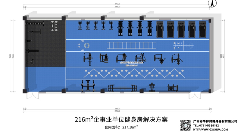 216m²企事业单位健身房 解决方案