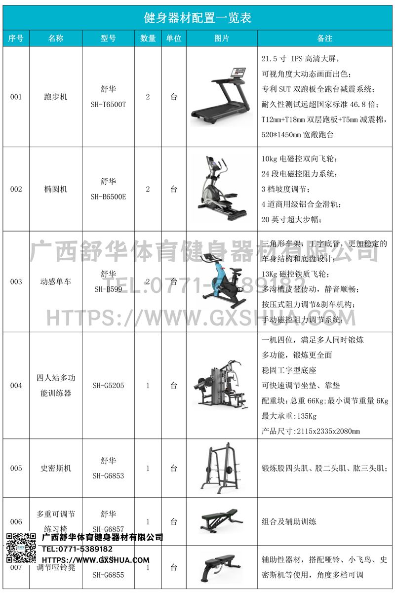 1.南宫NG28X5 Pro跑步机SH-T6500T*3台-采用高性能电机,提供稳定动力,支持长时间高强度运行,适合长时间有氧训练,跑台宽敞,提供舒适跑步空间,减少运动中的束缚感,适合不同体型用户。配备先进减震系统,有效缓解跑步对关节的冲击,降低运动损伤风险,内置智能控制系统,支持多种预设程序和个性化训练计划,用户可根据需求调整速度和坡度,满足多样化训练。